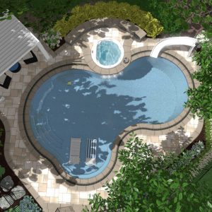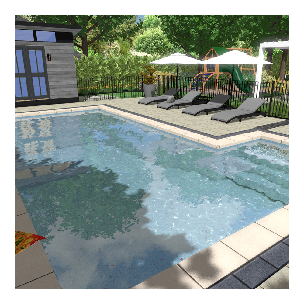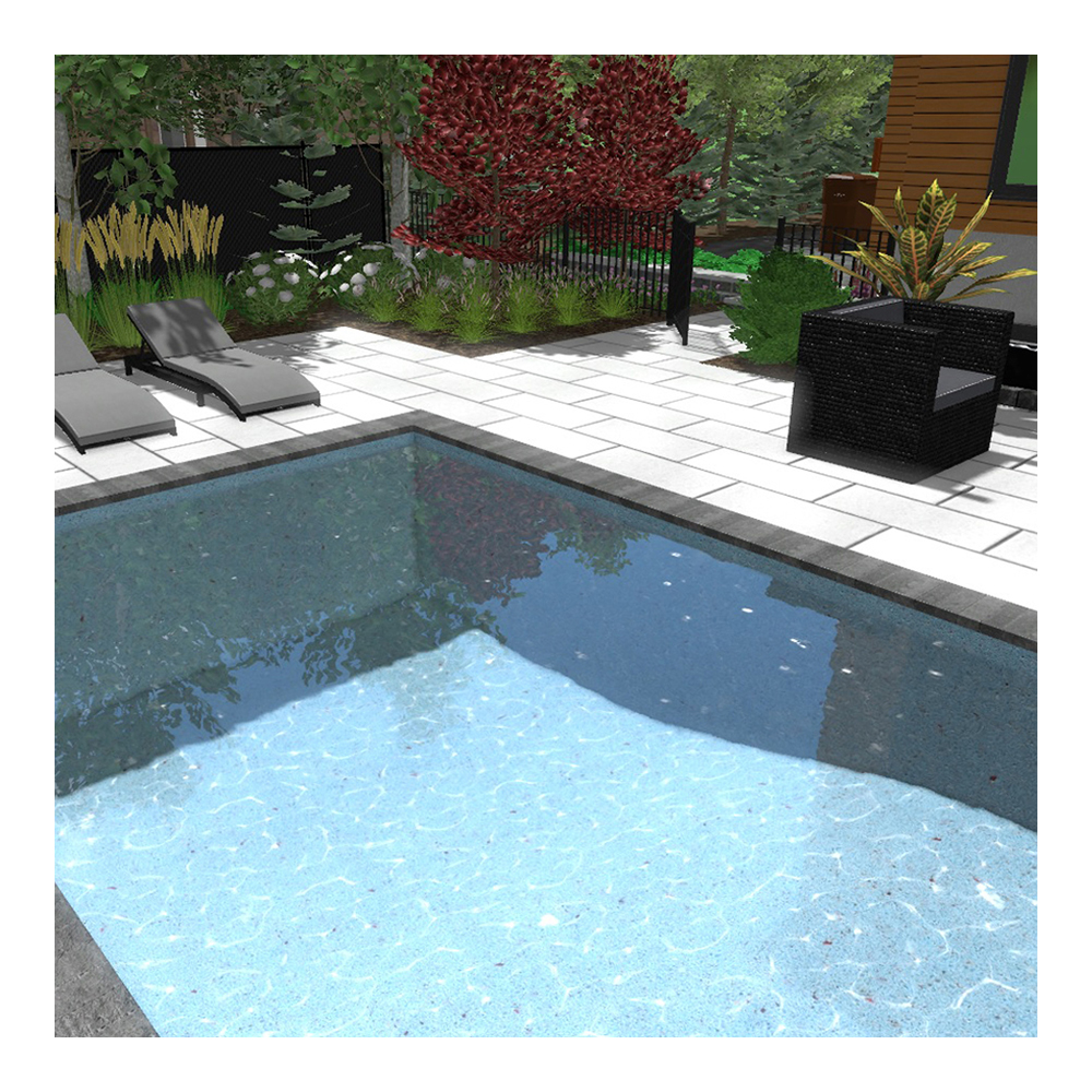 - D’agencer les végétaux et les autres matériaux inertes tels que les structures de bois, la piscine et le patio de façon optimale.
