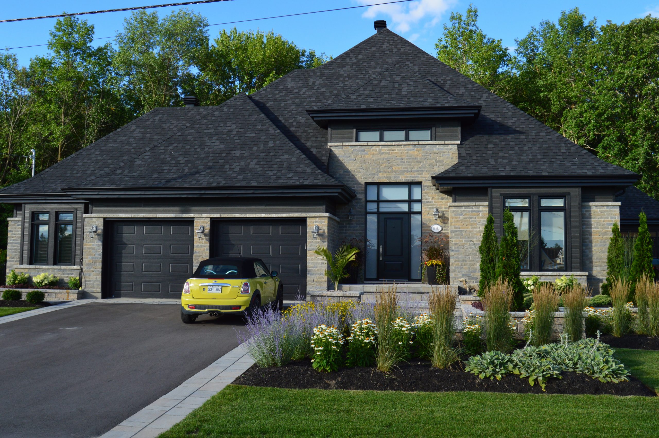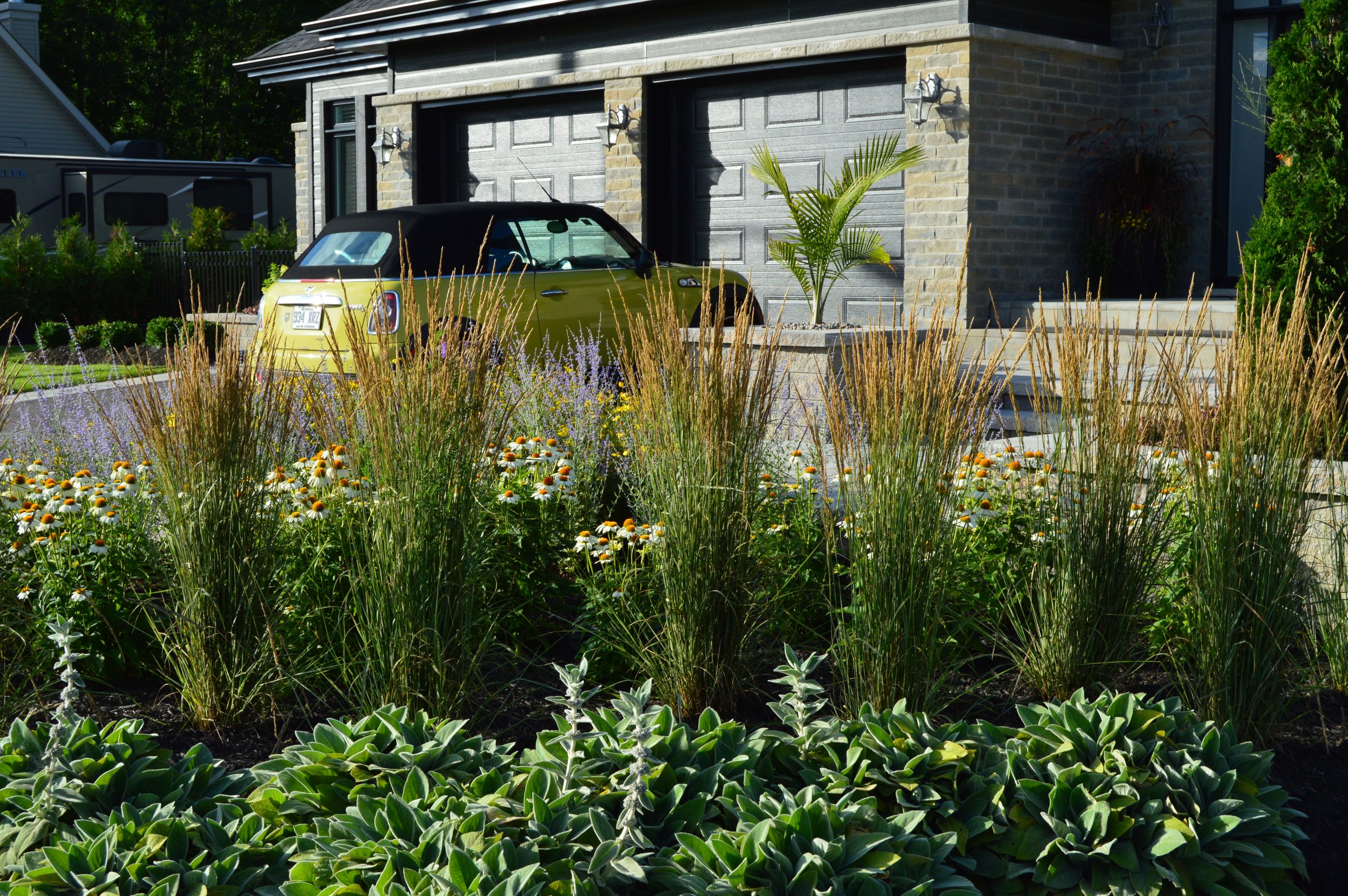 Malgré l’emplacement campagnard, nous avons joué la carte urbaine avec des plantations à 45º tout en conservant une petite touche champêtre.