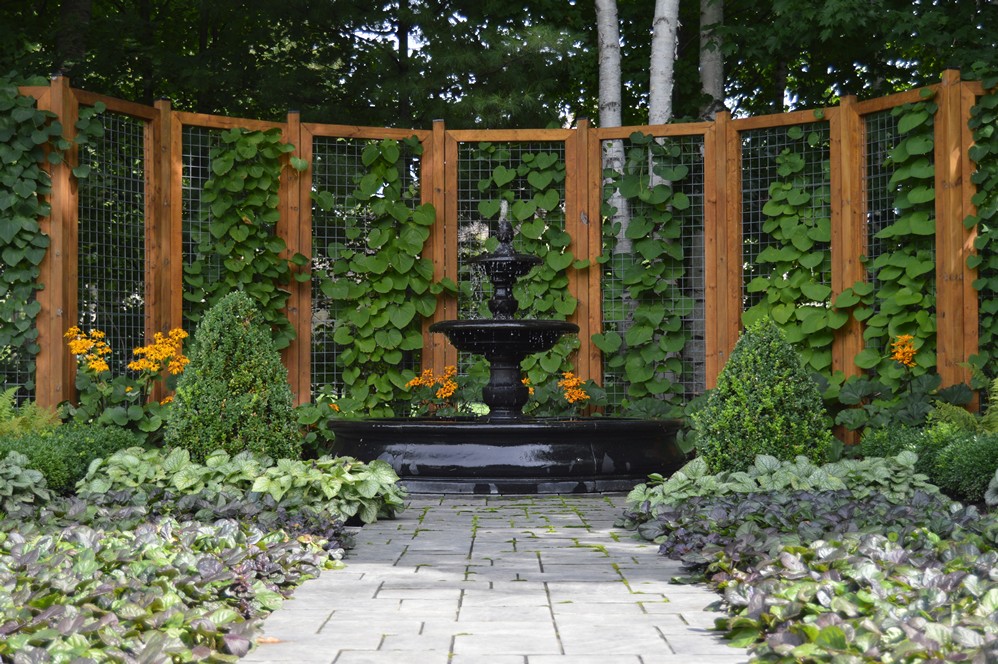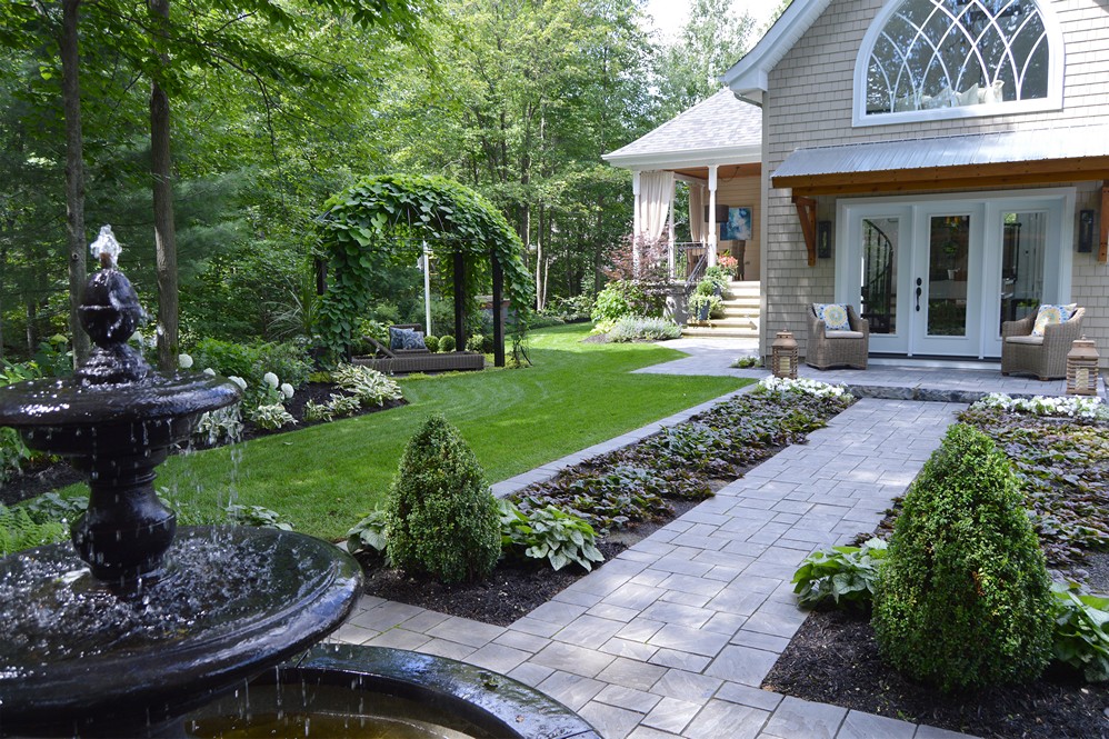 L’idée générale du projet était de concevoir un aménagement paysager de style européen en y incluant un élément focal important.